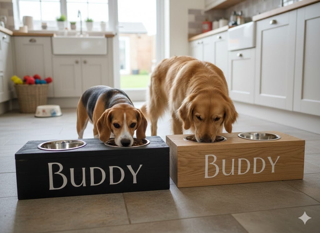 Handcrafted Personalised Double Dog Feeder